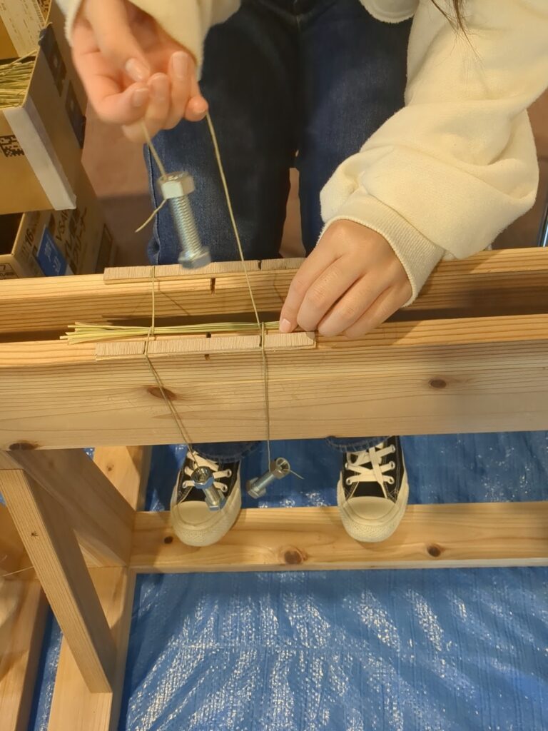 今回は、アロマテラピーの効果を考慮し、本来ゴザなどを編む際に用いる真菰ではなく、レモングラスが使用された。