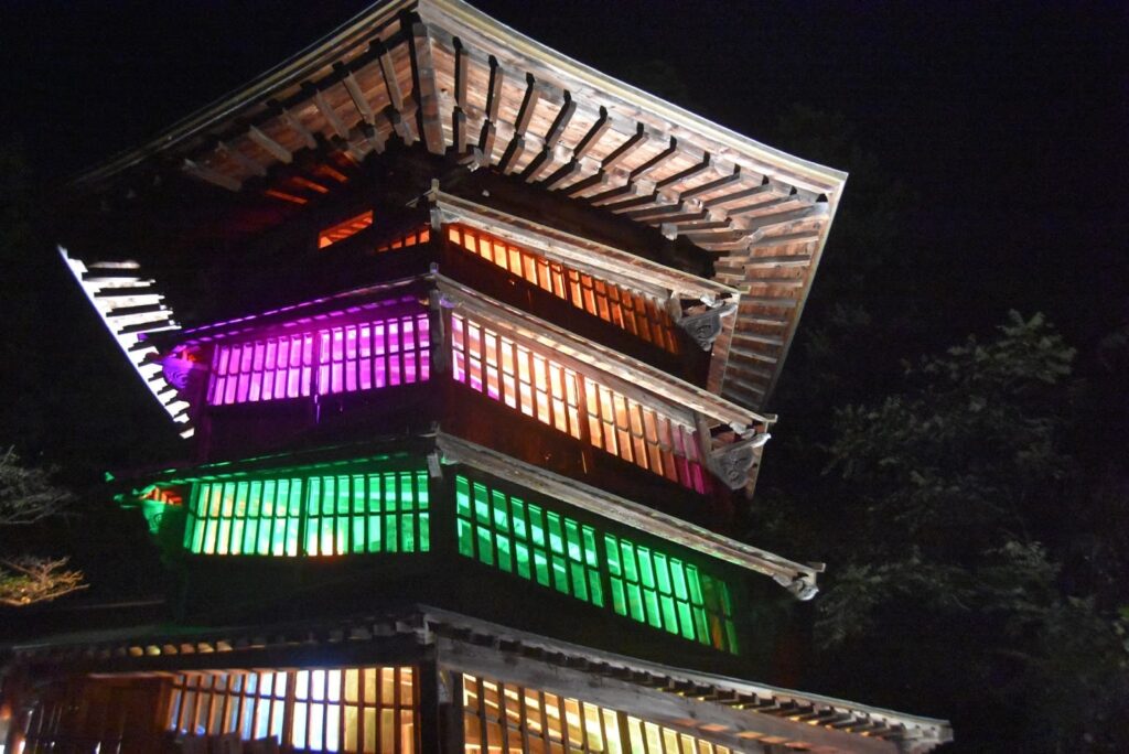 筆者はこれまで何度となくこの古刹を訪れてきたが、晩夏に行われたライトアップイベントは、これまでとはまったく異なる印象であった。螺旋状の木造建築である珍しいフォルムの美しさは、建築学的な側面からも以前から心をひかれていたが、闇の中に光で浮かび上がるその姿を再び目にした瞬間、まるで時間の渦に巻き込まれるような感覚になった。それは、当時の人々との巡り合いであり、時を超えた建築物との新たな対話の始まりだった。