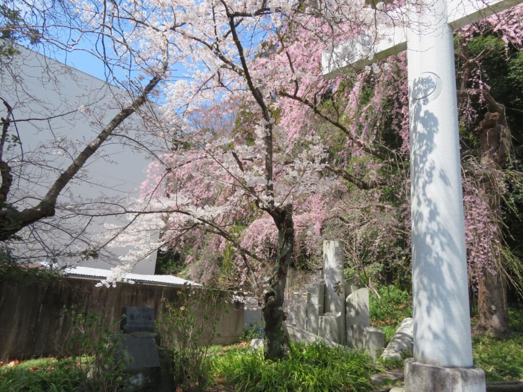 奥州街道のちょうど曲がり角にある青葉神社(仙台市青葉区)の入り口付近から咲き乱れる桜。