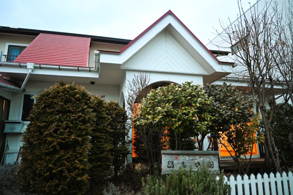 ドアを開けると、どこか懐かしい生活の気配が残っていた。リビングルームの名残を感じる空間に、優しい草花の写真が静かに並んでいる。2026年3月18日、郡山市桑野の「アートステーション美しい村」。閉館を前に最後の展示を訪ねた。