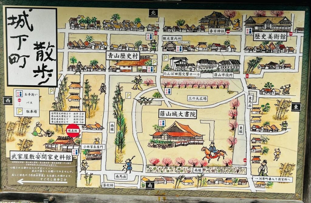 寛延元(1748)年、青山氏が赴任し明治維新まで篠山藩主として存続。青山氏は教育や文化の普及に努め、青山歴史村に書物類が数多く収蔵されています。