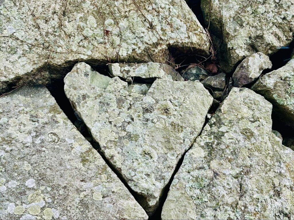 最近では、SNSで話題になっている石垣があります。こんな石垣が話題になると思いもよりませんでした。どの辺りにあるかはナイショですので、散歩しながら見つけてください。