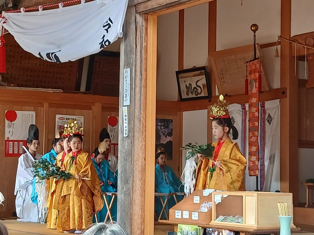 まず奉納された巫女舞では、境内がすっと静まり返った。華やかさを競う祭りではない。鈴の音と所作の一つ一つが、春を迎える土地の祈りそのもののように感じられた。