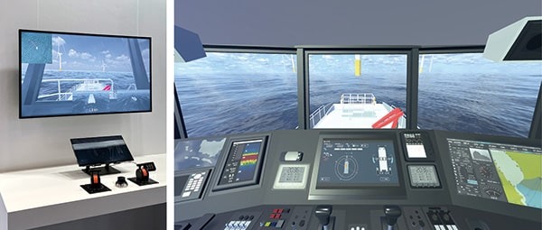 XR(VR、AR、MR)領域は、UnityやUnreal Engineを使ったインタラクティブなコンテンツ制作に力を入れています。例えば、洋上メンテナンス船のシミュレーターでは、波の荒い海で風車に正確に接岸する操作をVRで再現。ユーザーが実際の操作感を体験できるようにしました。これらは、製品開発の効率化や顧客への訴求力向上に貢献しています。