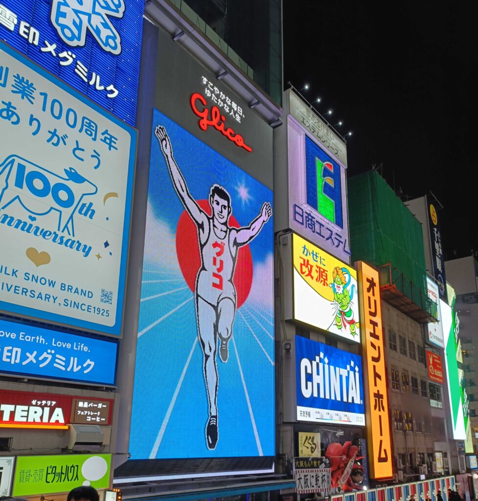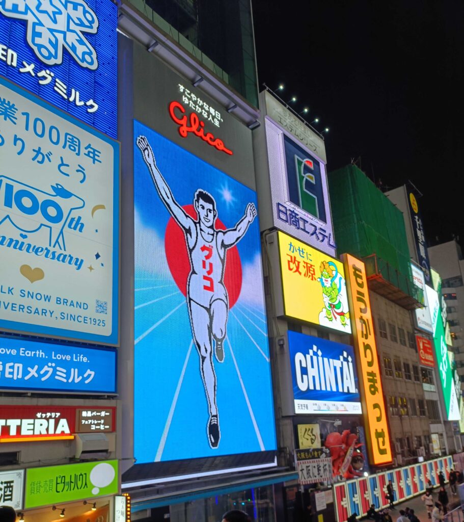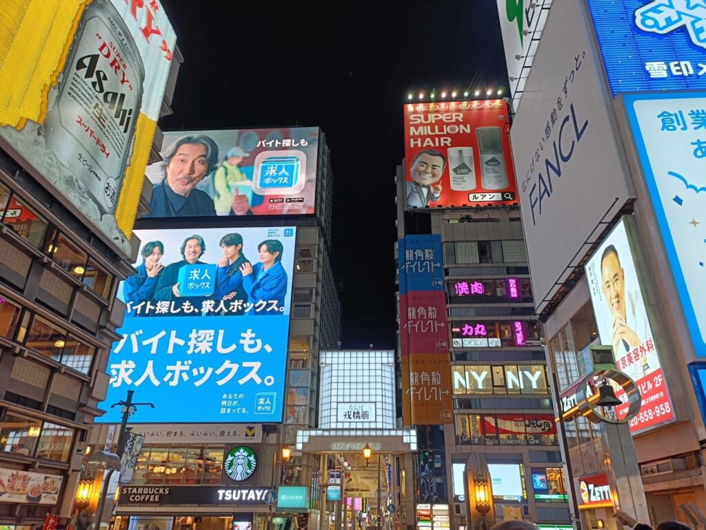 グリコを何枚か撮影しました。振り返ったら、あ、役所広司さんが、と思った途端、サッとTSUTAYAに変わってしまいました。くるくる変わるんですよね、広告が。役所広司さんとTSUTAYAにはなんの関係もないので(たぶん…)、変わりようがおかしい。ありゃりゃ~と思ってる間に、また次の広告へ移ってしまい、「都会の広告、すごいな」と改めて感じました。距離の近さもあるように思います。手をのばせば届くような感覚です。こういうところが大阪らしさの一つなのかもしれません。映画『ブレードランナー』を思い出しつつ、駅に向かいました。