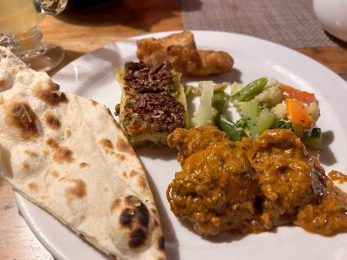 ただ、歩いても歩いても山頂は近くならず、山々の威圧に負けそうになりましたが、参加した登山チームのみなさんと励まし合ったり、専属のコックさんの手料理のおかげで元気に歩けました。最初の夕食は、ネパールの国民食「チキンダルバート」。そして誕生日の方がおられたのでお手製のケーキまでいただき大満足でした。