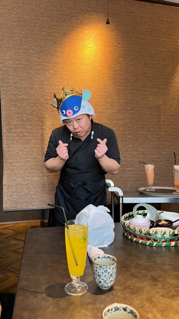 ふぐの王冠をかぶりながらの登場は、ちょっとしたサプライズ。