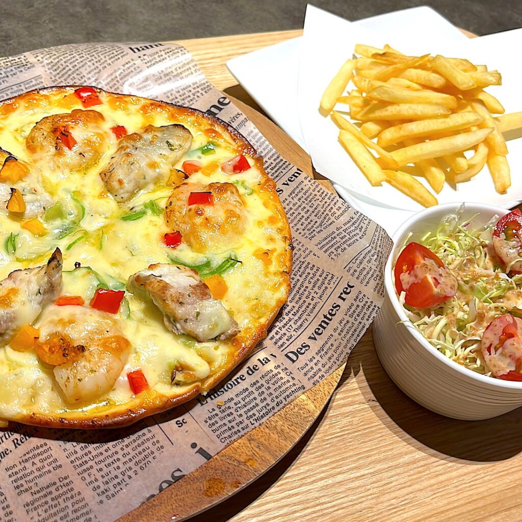 続いて登場したのは、なんと「ふぐとエビのクリームピザ」。ふぐのうまみとエビの甘みが重なり合い、チーズがとろける。
