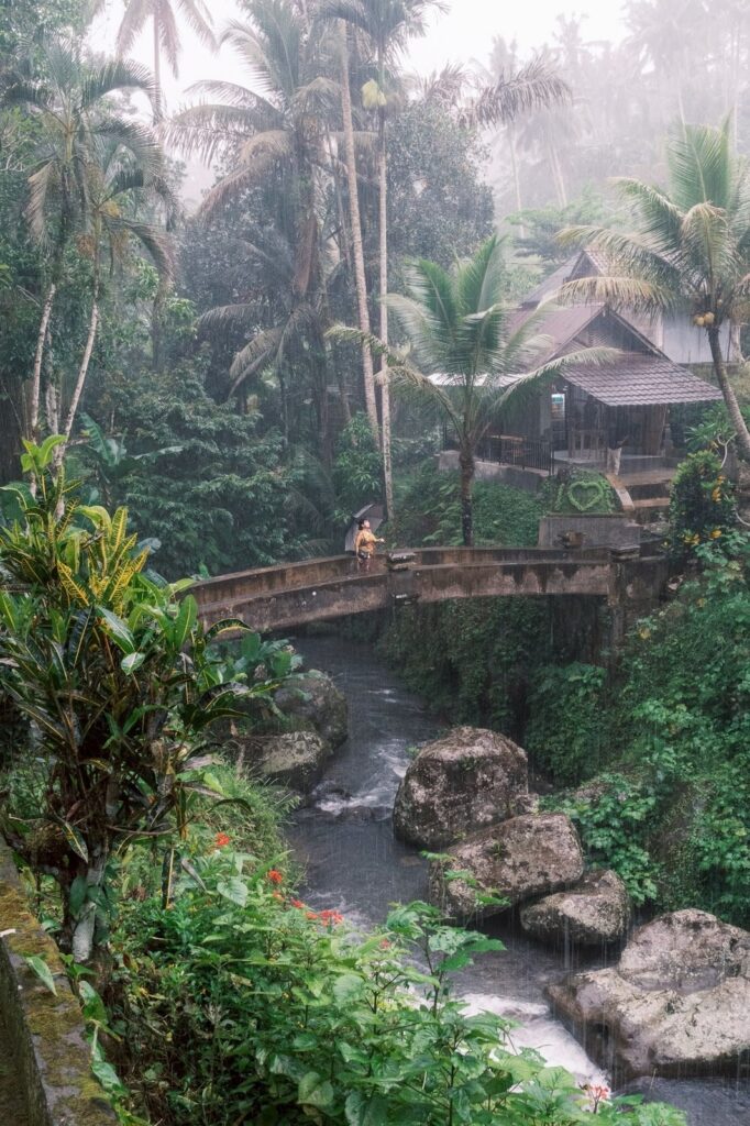 このような「岩山から掘り出されたような寺院」はバリ島でも極めて珍しく、渓谷の緑と川の水に囲まれた姿は、訪れる者を古と現代の境界へと誘う。
