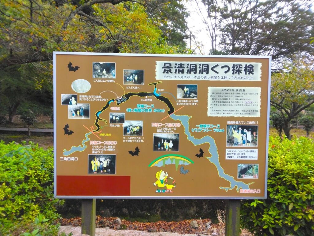 一般観光コースはバリアフリーにもなっている。ここでおよそのコースを確認したら、いよいよ景清洞内を探検開始。