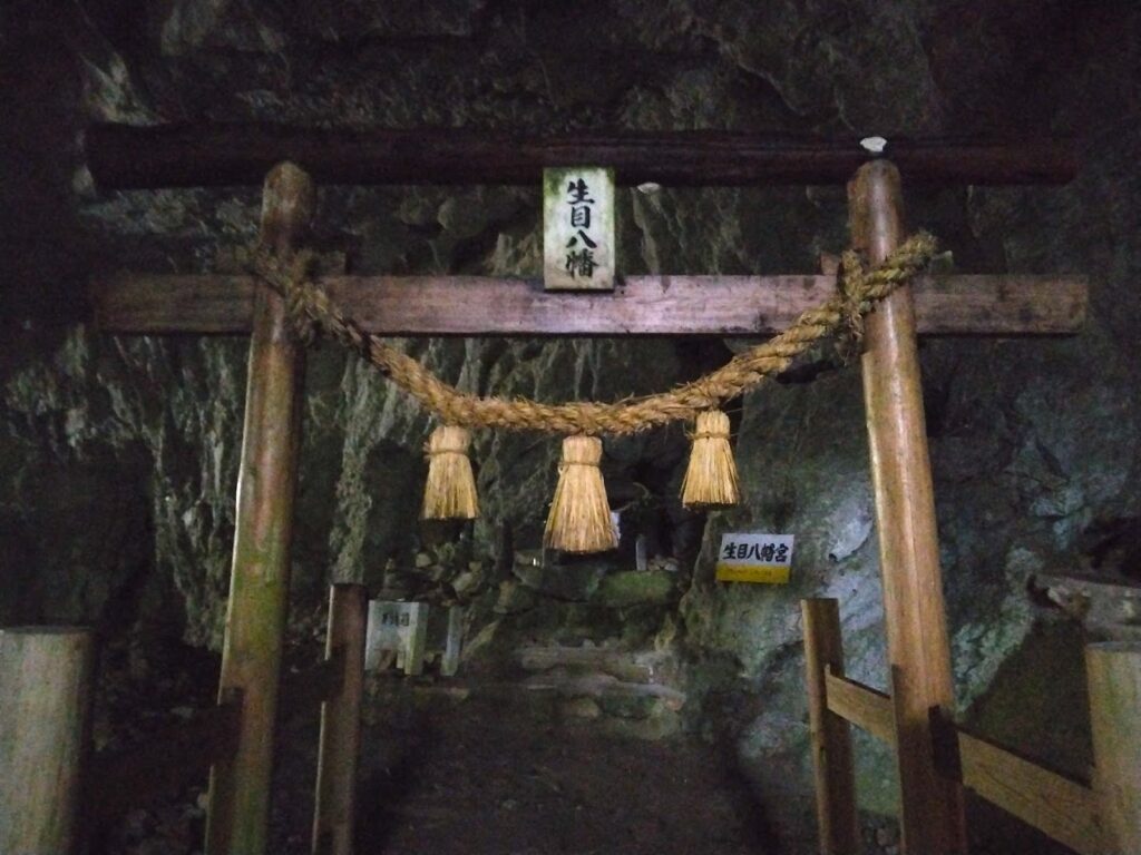 入ってみてすぐは、まだ陽の光が届くので植物が生えている。そして、すぐに生目八幡宮が見えてきた。