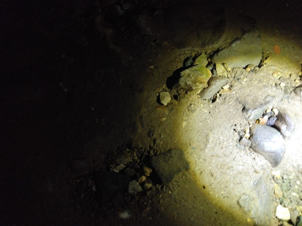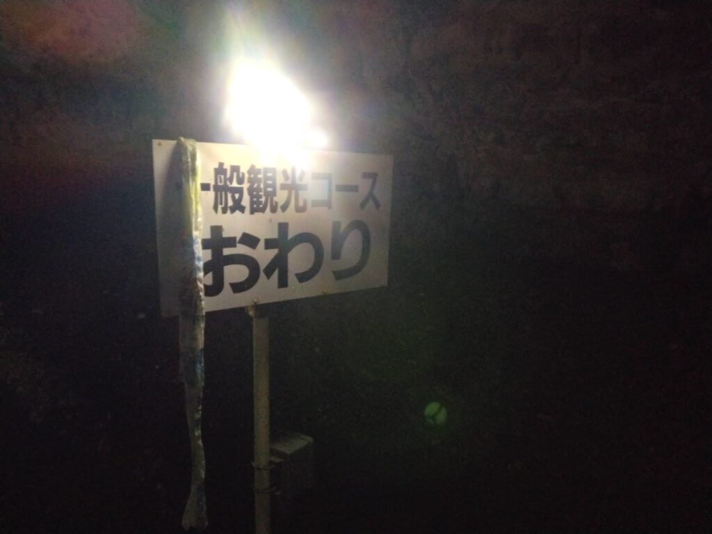 ここからは「探検コース」が始まる。ここから先は照明がないので、自分のライトだけが頼りだ。本当に暗闇の中を進むことになる。