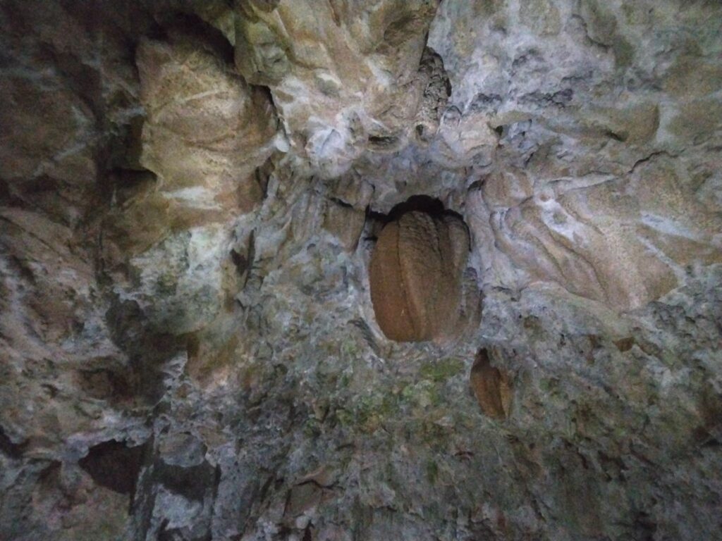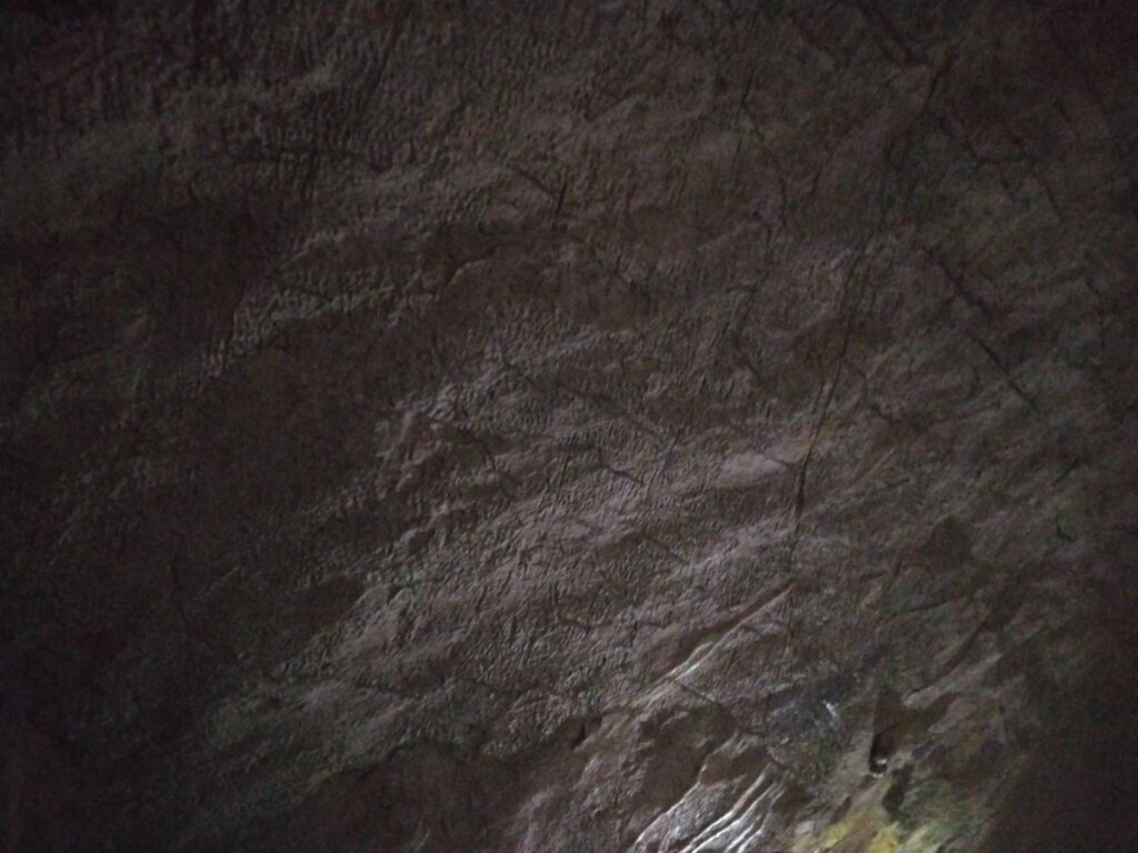 近くにくるとよく分かるが、岩肌に裂け目が入っており、メロンの模様にそっくりだ。これがメロン天井といわれて納得した。