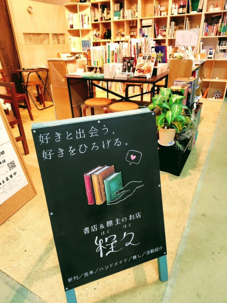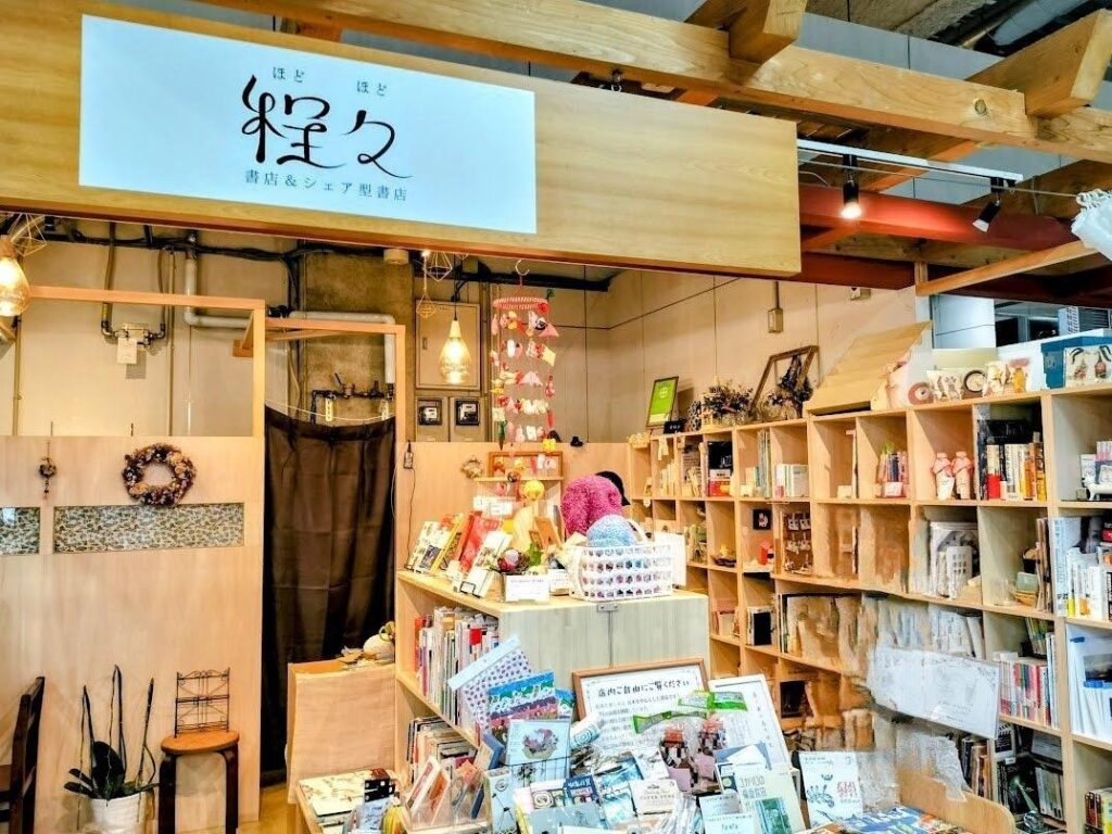 古本を中心とした書店と、シェア型書店を併設した「程々」。棚主が持ってくる本や小物のほか、新品の本や店内でのみ閲覧可能の、手に入りにくい本も置いてある。