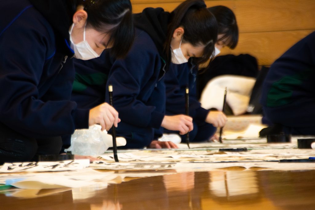 私の祖父は書家で、展覧会で受賞したり個展を開いたりするような腕前だが、作品は難解に思えた。高校生たちは、祖父の作品のような書をスラスラと書き上げていった。漢文の作品の意味を理解するのには時間がかかるが、文字と文のバランスが整っていることはすぐに分かる。
