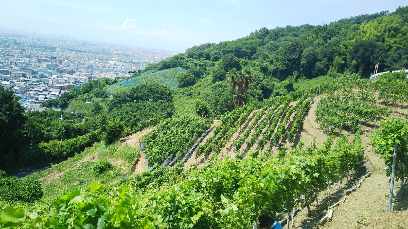 大阪平野の南東部、奈良県との境に位置する大阪府柏原市(かしわらし)は、大阪湾からの海風の影響を受ける比較的温暖な地域です。その雨が少なく温暖な気候は、明治時代に柏原市の山麓に開墾されることになる広大なブドウ畑の成長を助けました。