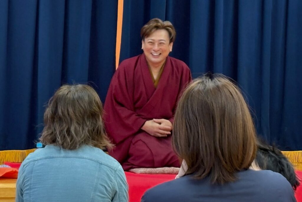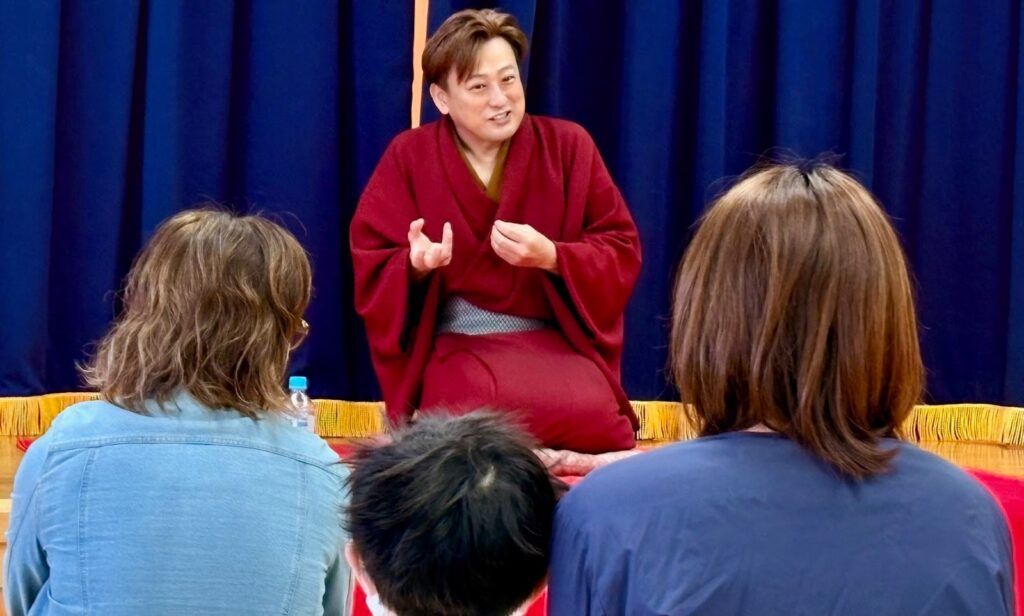 取材当日の11月10日は、あいにくの雨降りと相次ぐクマの出没やインフルエンザの影響により、前回よりも客数が少なかった。それでも「英語で落語」を楽しみにしていた方々も多く、筆者もその一人だった。なお喜餅さんは今回愛知から新幹線に乗り、東京経由で計7時間かけて秋田に来たとのこと、クマ出没の心配をしつつそれも落語のネタにして観客席を大いに笑わせていた。