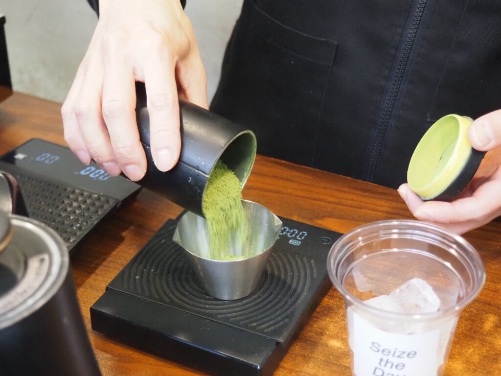 抹茶ラテを作っていただきました
