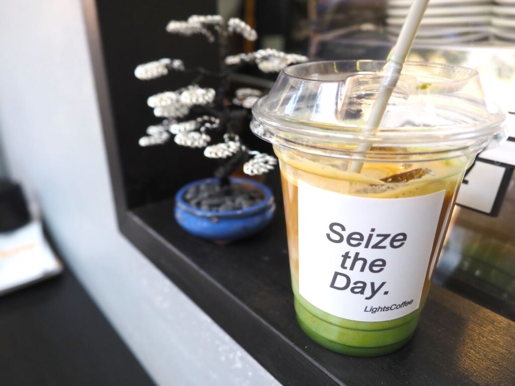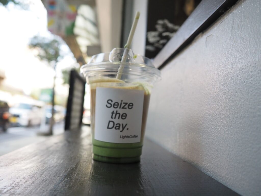 カップに印字された「Seize the Day」という言葉も記憶に刺さっています。「今を生きろ」という意味を持つこの言葉は、悩んだり先の不安を考えたり、過去悔やんだこともあるけど、今できることをやるしかない。
