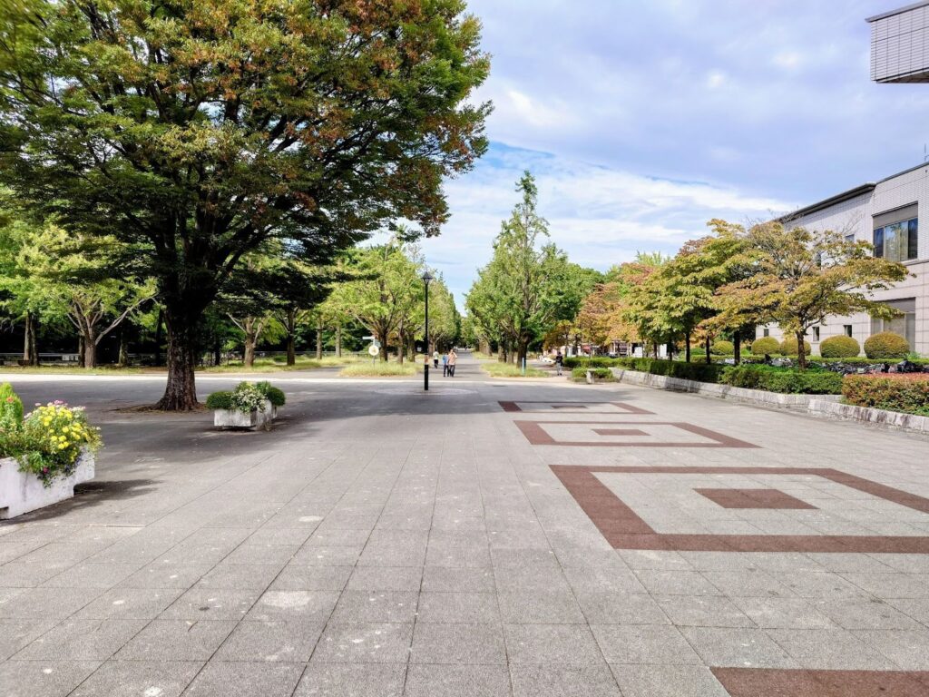 まず園内にある案内図を見てみると園内中央を並木道が貫いているのが分かります。実際に歩いてみると、想像以上に道幅は広く、この並木道がかつて戦闘機の滑走路だったのかと思うと不思議な気持ちになるのでした。
