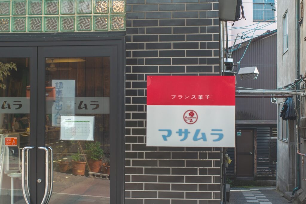 こちらの看板もフォントが昭和レトロでかわいかったので撮影したところ、地元では知らない人はいない「マサムラ洋菓子店」の上土店でした。松本駅近くに喫茶室併設の本店があります。昔ながらのケーキが並び、「ベビーシュークリーム」が一番人気だとか。やはりピンとくる店構えのお店は、名店のようです。