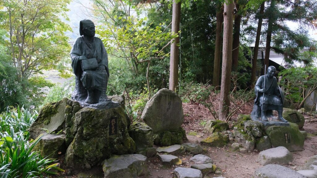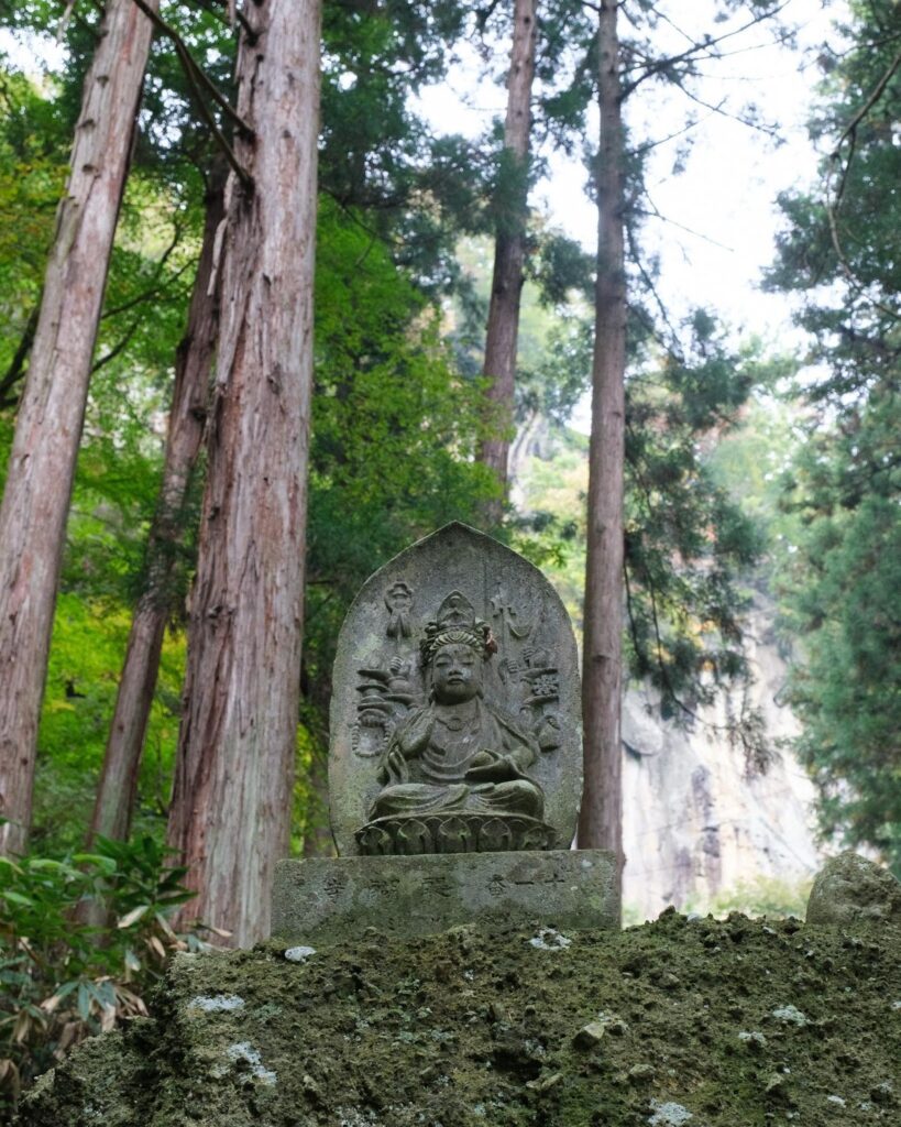 山寺の正式名称は宝珠山立石寺。860年に慈覚大師円仁によって開かれた天台宗の名刹(めいさつ)であり、東北を代表する霊場である。アクセスもよく、JR仙山線・山寺駅から徒歩10分ほどで山門へたどり着く。参道の途中では、旅の途中にこの地を訪れた松尾芭蕉の銅像が出迎えてくれる。芭蕉が詠んだ「閑さや岩にしみ入る蝉の声」の句は、まさにこの地で生まれたものだ。周囲は幾重にも重なる巨石と杉木立に囲まれ、岩肌に刻まれた仏像や地蔵が並ぶ。立ち止まると、風と鳥の声しか聞こえない。句の情景がそのまま現実に重なるような静寂があった。