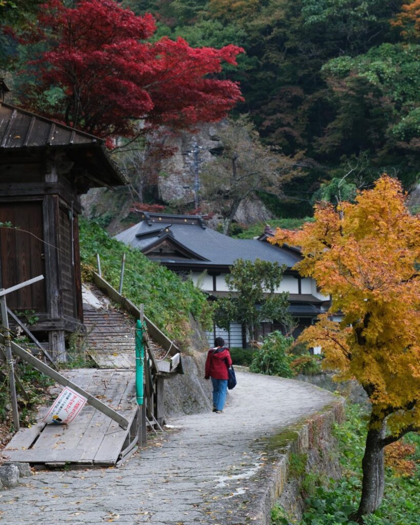 今回訪れたのは10月31日。紅葉はまだ始まりかけだったが、緑と赤が入り混じる山の景色が美しかった。これから色づきが深まる十一月、雪が降り始める十二月までのあいだ、山寺は一年で美しい季節を迎えるので、ぜひこの機会に訪れてみてほしい。