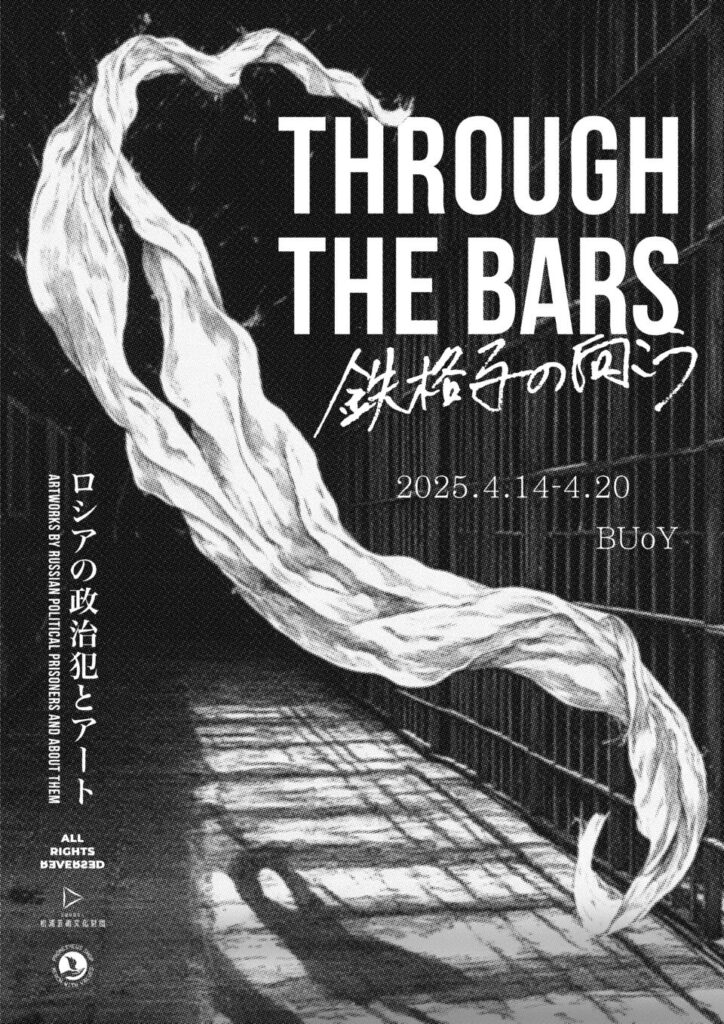 2025年4月、東京・北千住にあるアートセンター「BUoY」で、「THROUGH THE BARS 鉄格子の向こう – ロシアの政治犯とアート-」という展覧会が開催されました。ロシア語圏のプロテスト・アートを最大に扱うALL RIGHTS REVERSED(現在は「Prometheus」と名称が変わったようです。主にベルリンやアムステルダムで展覧会を開いています)が開催した「THROUGH THE BARS」という展覧会のキュレーションを軸として、日本のALL RIGHTS REVERSED TOKYOがその日本版として開催したものです。ALL RIGHTS REVERSED TOKYOは、この展覧会のためにYaSoprotivlenie関係者の在日ロシア人と、日本人アーティストデュオMESが立ち上げたものだそうです。