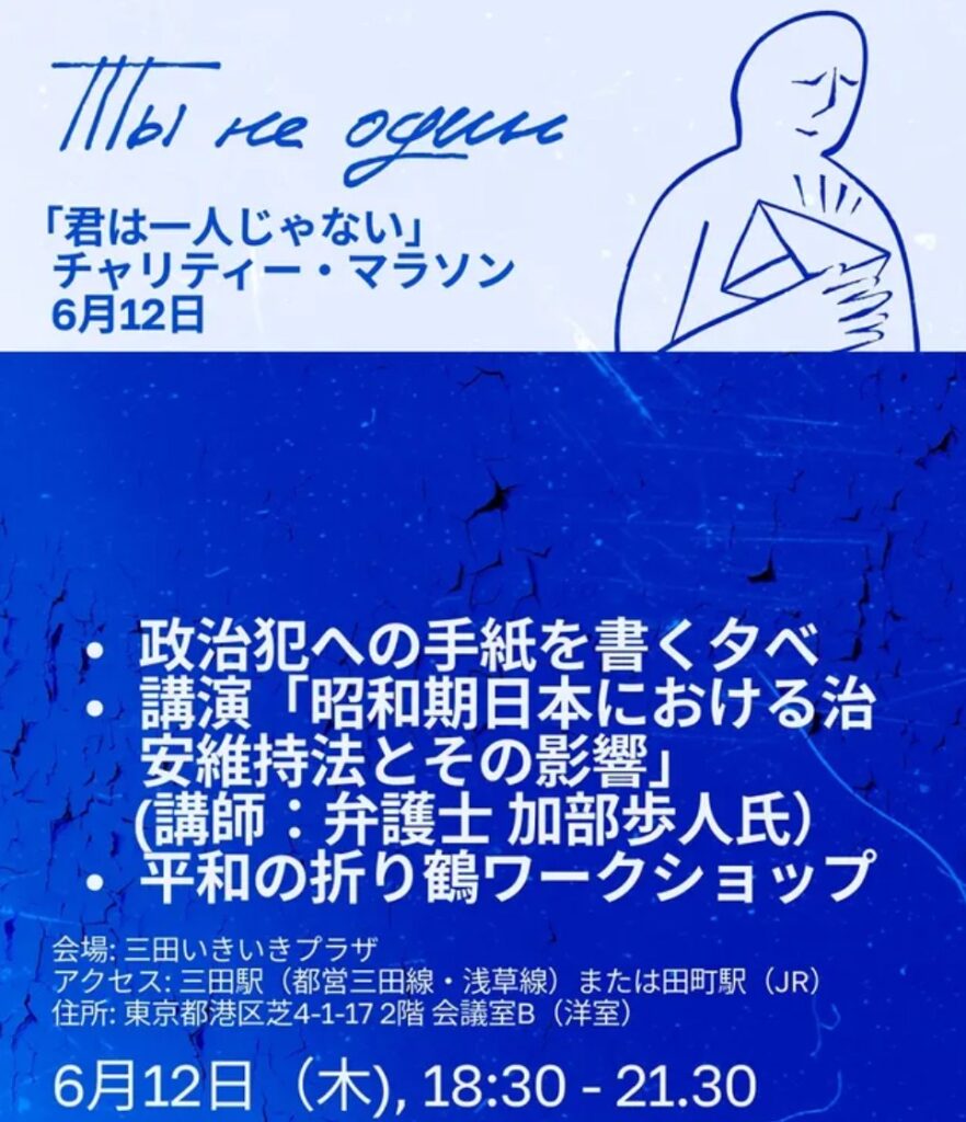「政治犯への手紙を書く夕べ」Instagram @pismaiztokyo