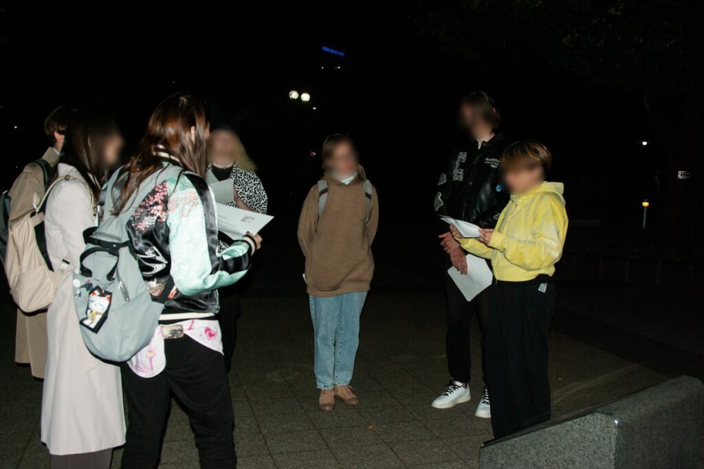 夜7時の開始時間になると、参加者が集まりました。ニカさんと私以外は、皆さんお若い方ばかりです(身の安全のため、顔にぼかしをかけています)。10人未満のこじんまりとした集まりです。