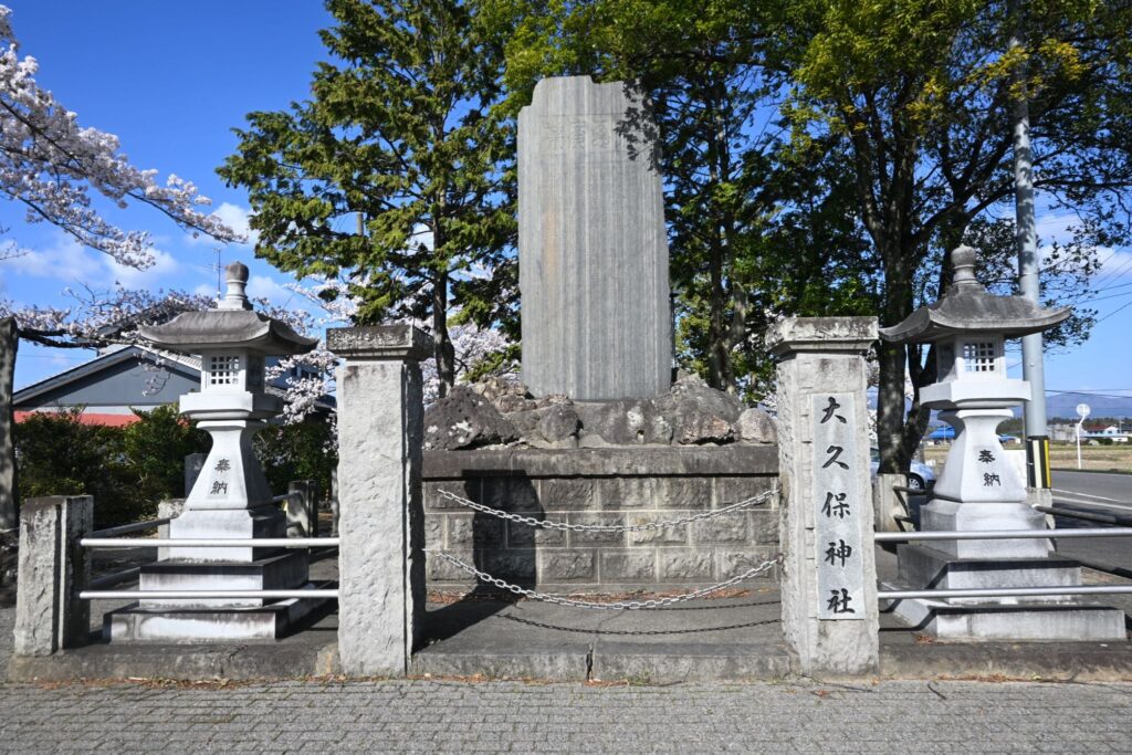 年4月上旬、私はその地を訪れた。畑と住宅が混在する穏やかな風景の中、満開の桜に囲まれてたたずむのは、ひとつの顕彰碑だけだ。この神社は、明治維新の立役者の一人である大久保利通の遺徳をたたえ、地元の人々によって建立された。安積疏水の開削に尽力した人物のひとりとして、その名がこの地に刻まれている。