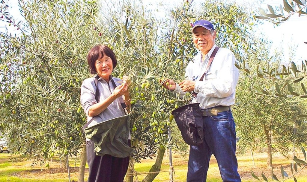 そんな小豆島の南東部、内海湾(うちのみわん)から少し山の方へ車を走らせたところに、空井農園(そらいのうえん)があります。創業者である空井和夫(そらい・かずお)さん(76歳)が、定年退職を機にご両親のオリーブ畑を引き継ぎ、奥様のひとみさん(70歳)とともに空井農園を営んでいるそうです。