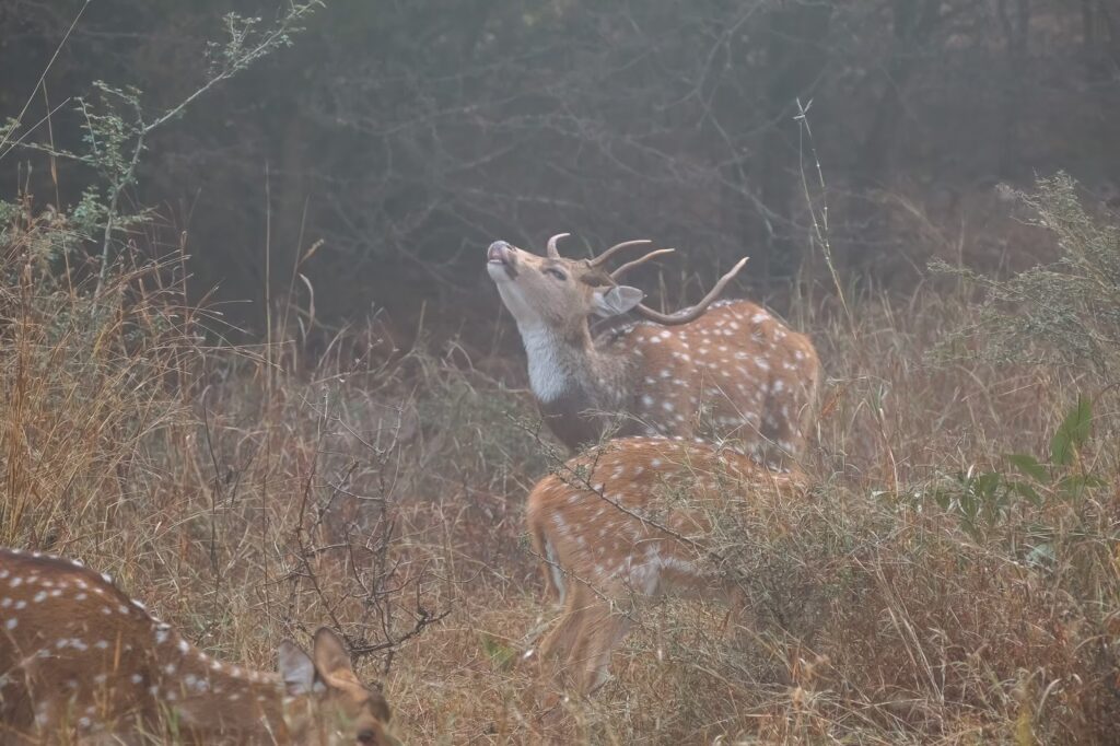 自然の中で虎を待つ時間には独特の緊張感がある。ガイドが静かに耳を澄まし、シカの警戒鳴きや鳥の騒ぎなどから虎の接近を読み取る瞬間は、まるで映画のワンシーンのようである。
