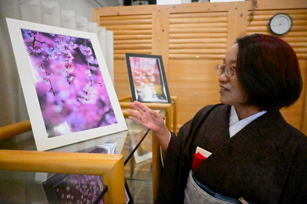 初澤さんは市の広報やSNSで活動する市民フォトグラファー。「花鳥風月をテーマに10年間撮影を続けてきた。特に揺れるしだれ桜で風を表現することを意識した」と話した。