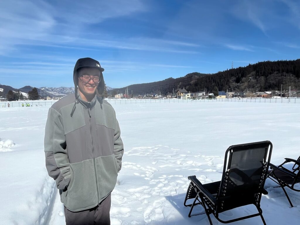 海さんは岩手県出身で、現在はお隣の東成瀬村の地域おこし協力隊として活動しながら、移動式「サウナ灯火(ともしび)」を手がけています。この日はかねてからお手伝いをしていた友人の「井戸端サウナ」の車で現場に来ていました。