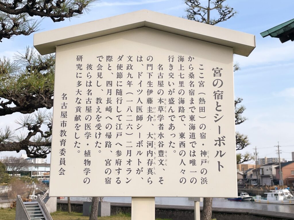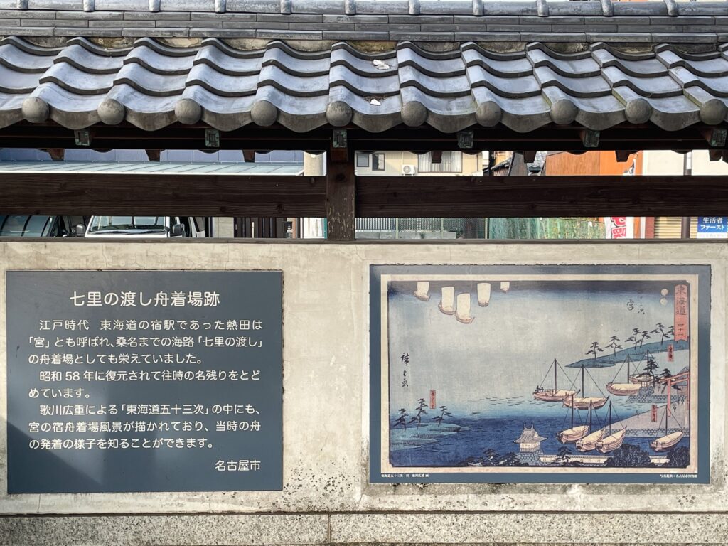 現在の七里の渡し跡周辺はとても静かで、海を感じることができるとても素敵な場所なのですが、かつての宿場町のにぎわいはありません。風景は最高ですし、大観光スポットの熱田神宮の門前町として復活できそうなポテンシャルは十分あるのに、ちょっともったいないと思います。