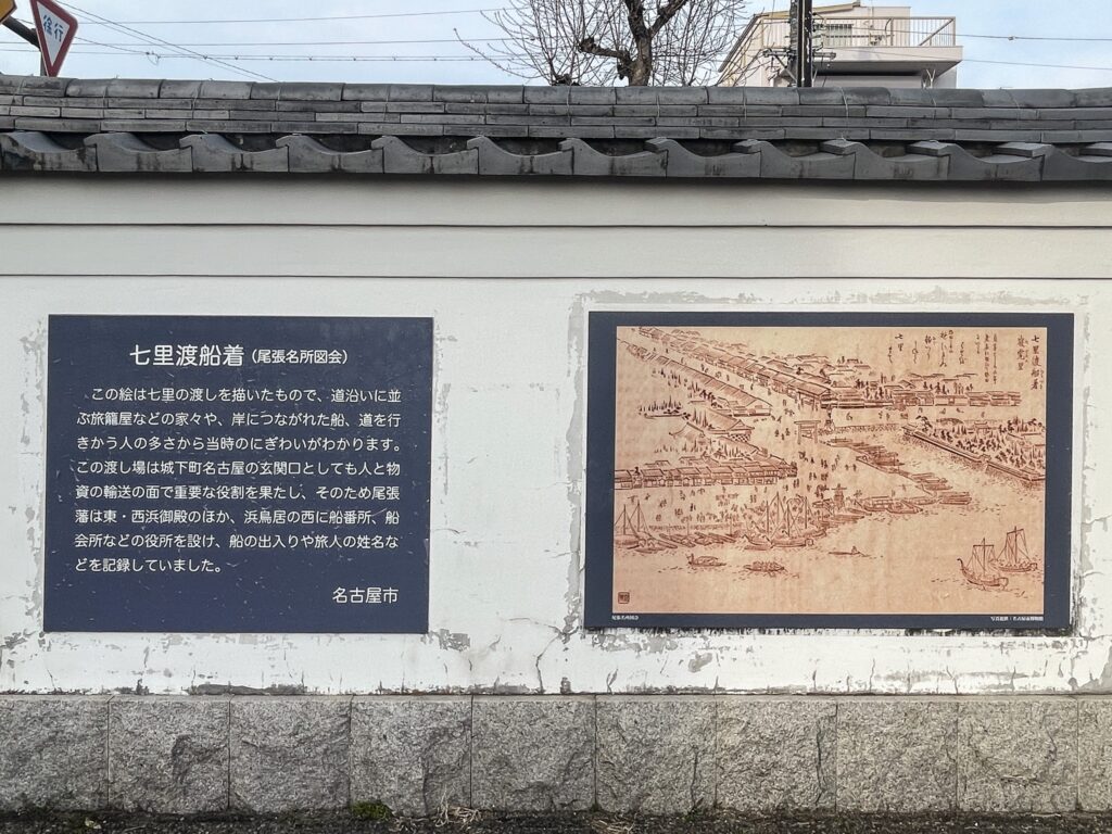 七里の渡しは宮宿と桑名宿を結ぶ東海道唯一の海路で、その距離が七里(27.5km)であったことから、そう名付けられたそうです。この海上ルートは、東海道の宿駅制度が設けられる以前、すでに鎌倉・室町時代から利用されており、古くから東西を結ぶ重要な交通インフラでした。