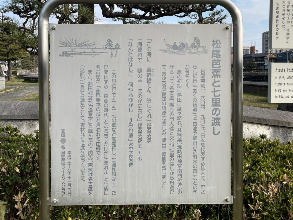 かつて七里の渡しの船着場があった付近は、現在は「宮の渡し公園」として整備されています。