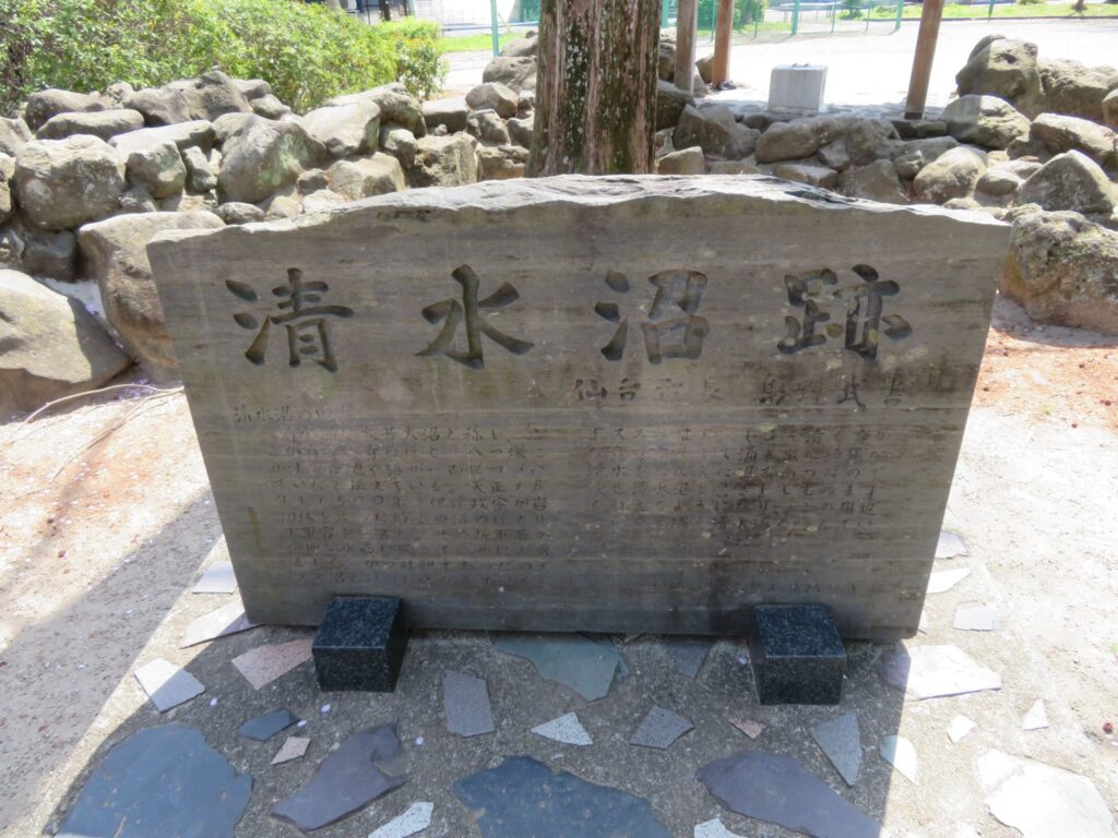 1601年に仙台が開府される前の1590年、伊達政宗公が岩切城(仙台市宮城野区・宮城郡利府町)を攻める目的として軍容を整えた場所としても有名である。勇ましい軍装が澄明な水面に写ったことから「スズ沼」とも称されたと石碑に刻まれている。