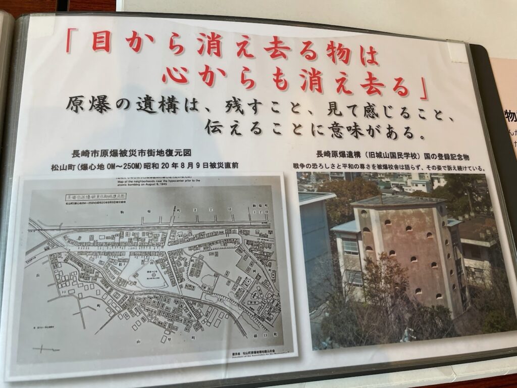 「原爆の遺構は残すこと、見て感じること、伝えることに意味がある。目から消えるものは心からも消えます。遺構を見ることで、そこから平和がなぜ大切かを感じ取ってもらいたい」
