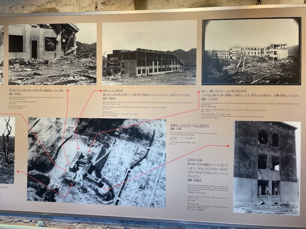 爆心地から西に500mのところにあるこの場所は、原爆で多くの生徒の命を奪われ、校舎も大きく崩れてしまった。