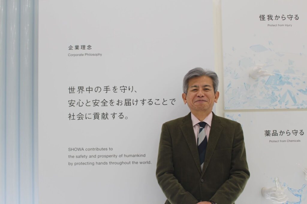 転職活動の中で出会ったのが、姫路に本社を置く手袋メーカー・ショーワグローブでした。面接で出会ったのは、当時の営業本部長であった常務。市場の見通しや技術の話を、真正面からぶつけてくる姿勢が印象的だったと振り返ります。