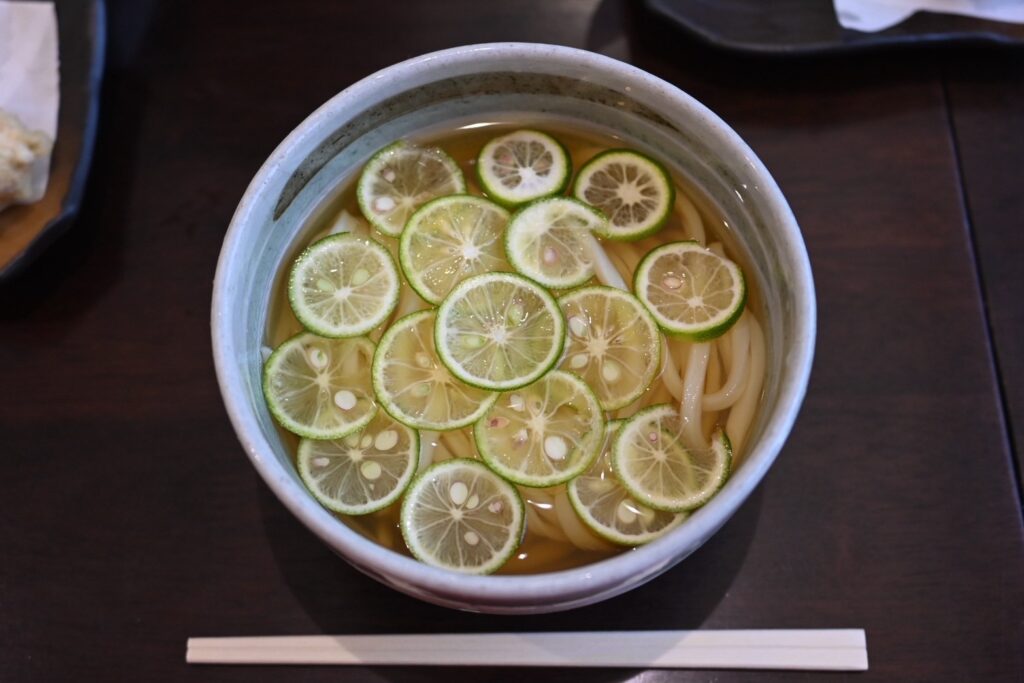 すだちは徳島県が主要な産地であり、香川県内の多くのうどん店でも徳島産を使用しています。讃岐うどんのコシの強さや優しいだしに、徳島産すだちの爽やかな酸味が加わることで、地域を越えた特産品同士の組み合わせが生まれました。