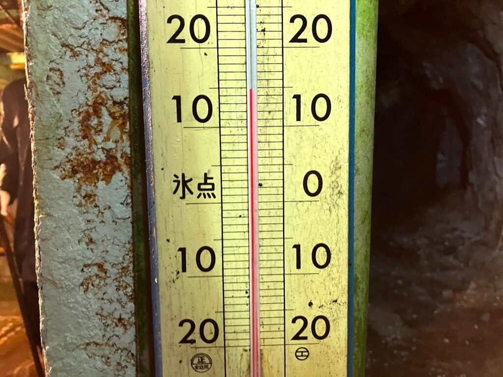 坑内に入り、ハアーっと空気を吐くと白い息となり、気温差を目で確認することができます。