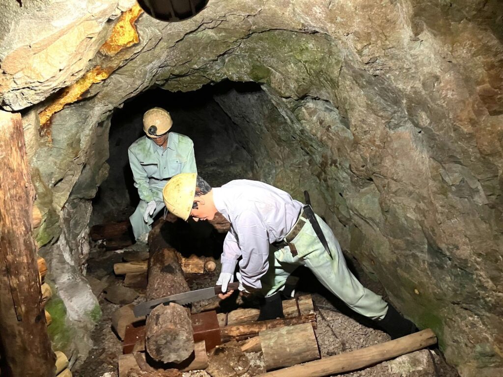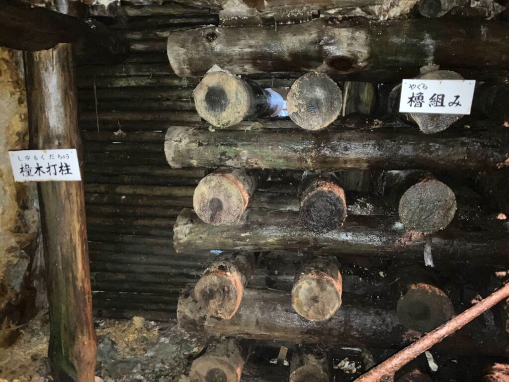活躍したのは、何も機械だけではありません。坑道が崩れないように、支柱で支える必要があります。岩盤の状況や坑道の大きさに適した支柱が何か判断し組み上げます。