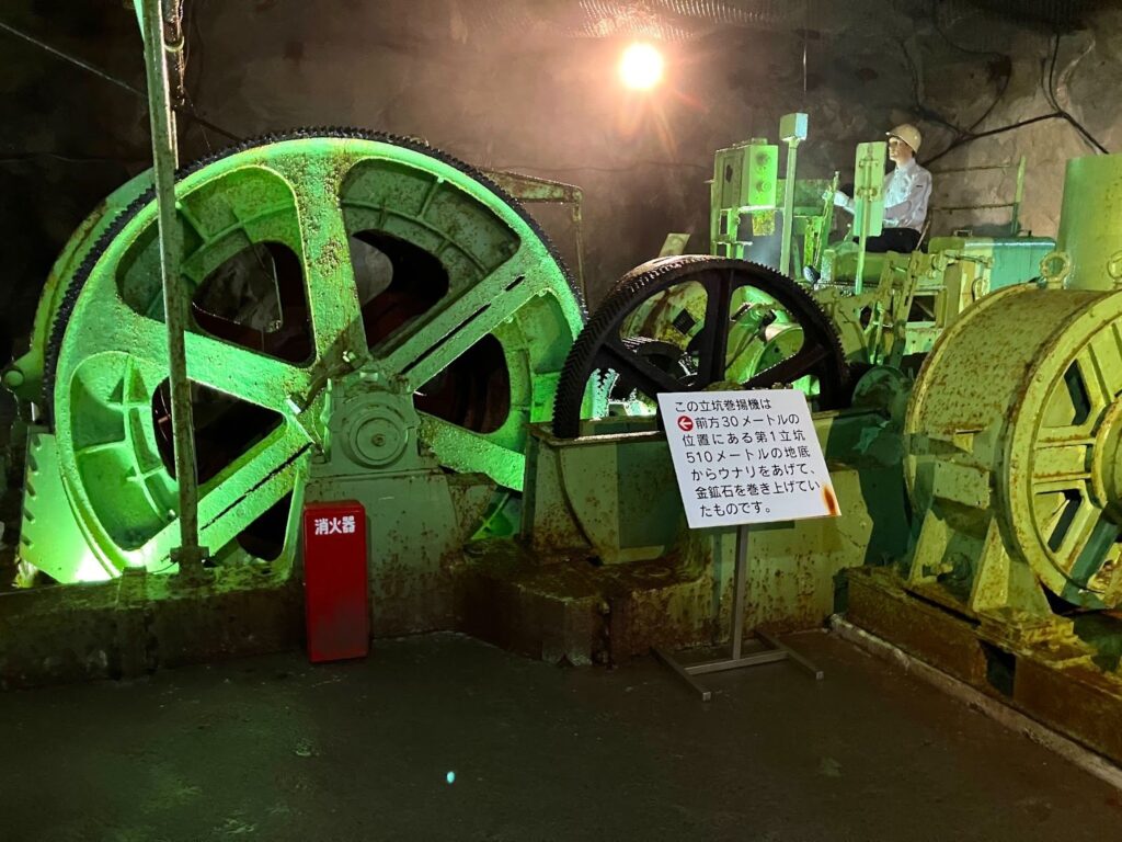 巨大な立坑巻き上げ機は、この鉱山にはなくてはならないもの。鉱石や鉱員・資材を積んでエレベーターの役割を果たしています。
