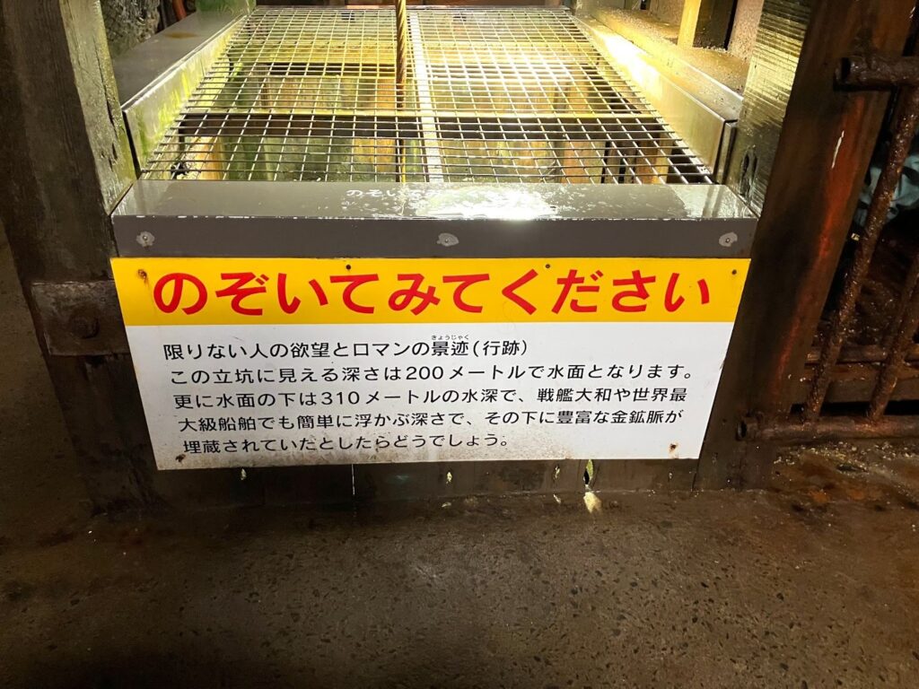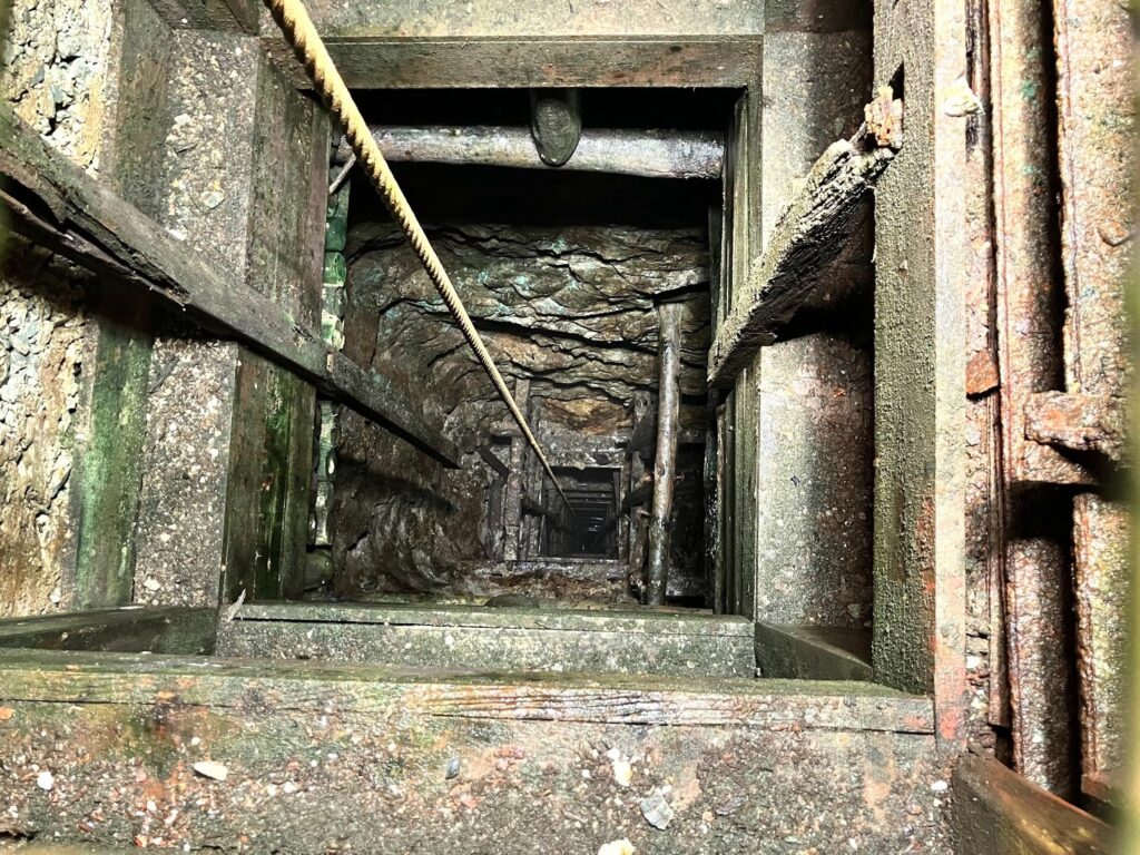 立坑から下をのぞいてみると、底は全く見えません。深さ510m、地下17階まで続いています。この開削技術力も高く、「鯛生ではまるで水平坑道を掘るように軽々と竪坑を掘る」とまで賞賛されたようです。