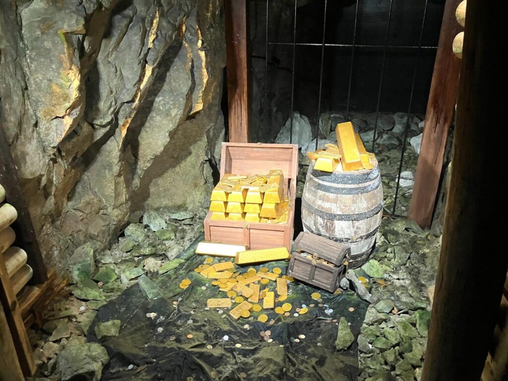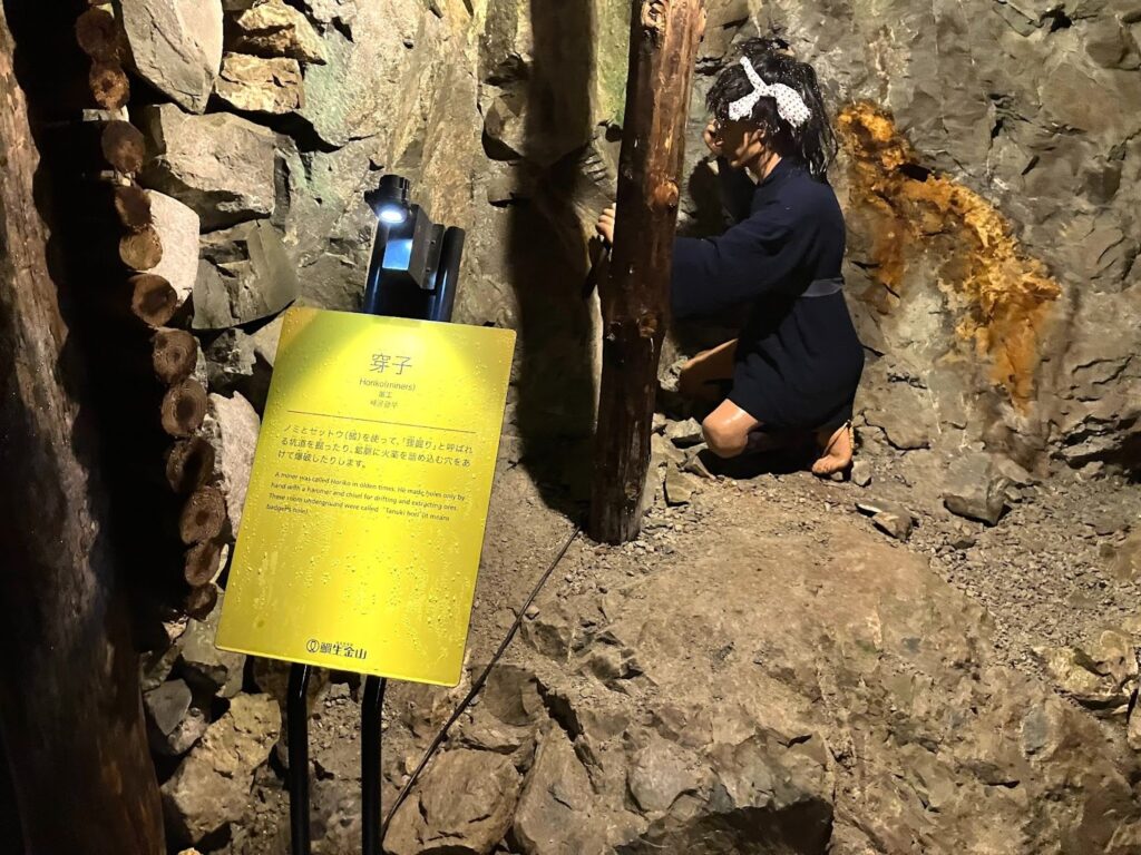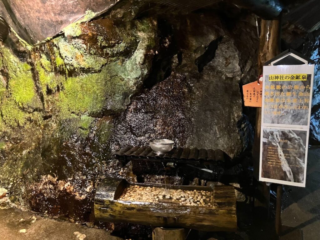 坑内には山神社や金鉱泉があります。金鉱脈の岩盤からわき出た金鉱泉でお金を清め、3回洗うと一生お金に困らないといわれ、金運上昇につながるとか。そして、洗ったお金はすぐに使うほどいい、と言われているそうです。