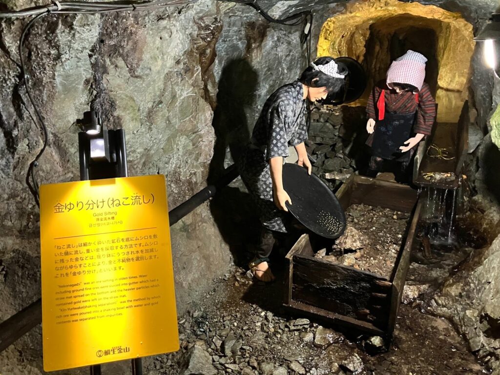 金ゆり分け(ねこ流し)といって、金と不純物を選別する仕事も人の手でされました。