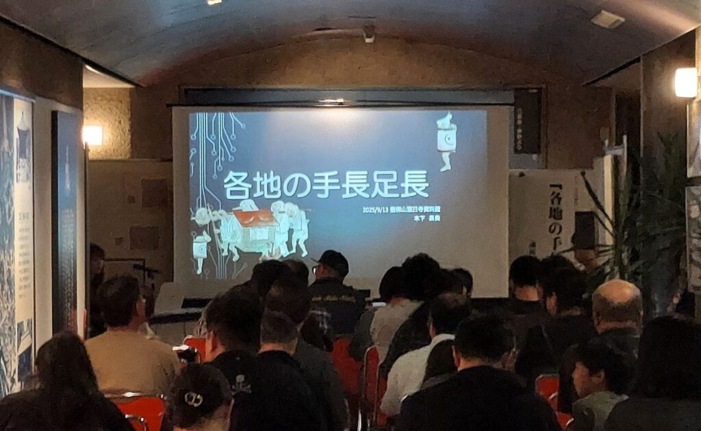 講演は夜間開催ということもあり、幻想的な雰囲気の中で進行。磐梯山慧日寺資料館の荘厳な空間が、妖怪伝承の世界観を一層引き立てた。親子連れの姿も見られ、世代を超えて妖怪文化への関心が広がっている様子がうかがえた。